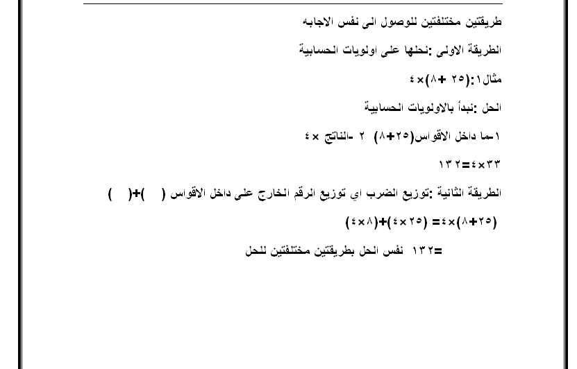 بالصور شرح أولويات العمليات الحسابية وورقة عمل عليها لمادة الرياضيات للصف الخامس الفصل الأول منتديات صقر الجنوب