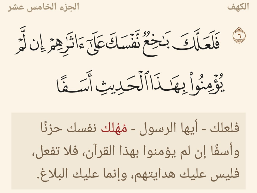 تفسير و معنى كلمة باخع ب اخ ع من سورة الكهف آية رقم 6 تفسير كلمات القرآن الكريم