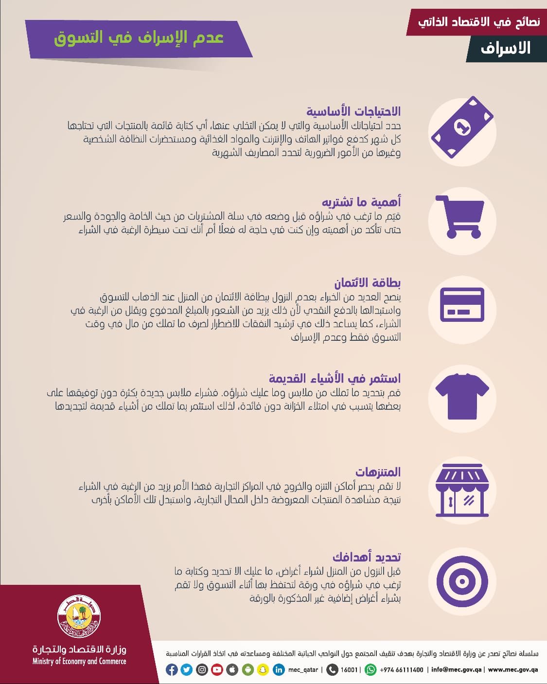 وزارة التجارة والصناعة على تويتر نقدم لكم مجموعة من النصائح والمعلومات التي ستساعدكم في عدم الإسراف في التسوق ولا تسرفوا أقل من الواجب