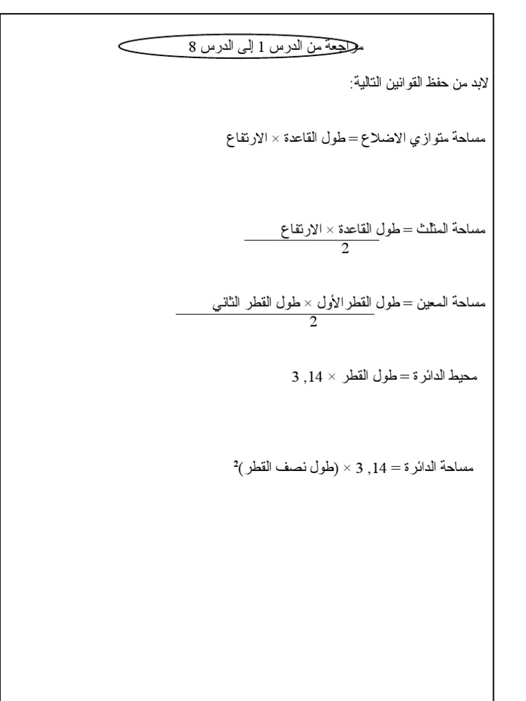 قواعد الرياضيات قواعد المساحة قواعد الحجم والمحيط