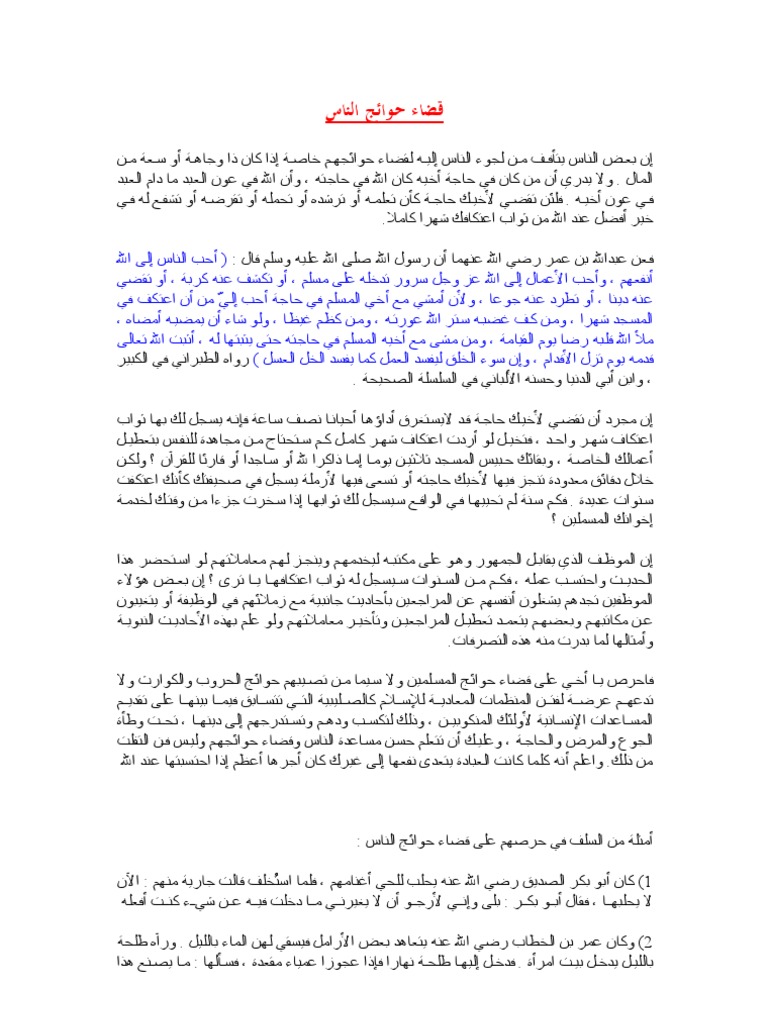 حديث شريف عن قضاء حوائج الناس موضوع
