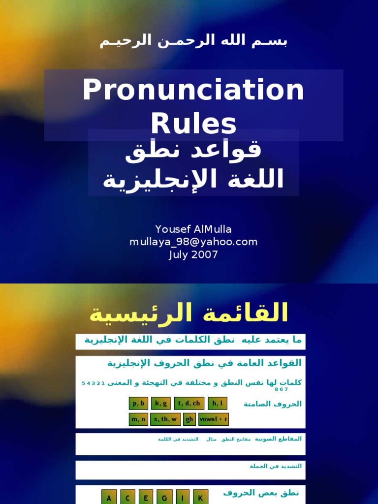 Pronunciation Rules قواعد نطق اللغة الانكليزية 2009