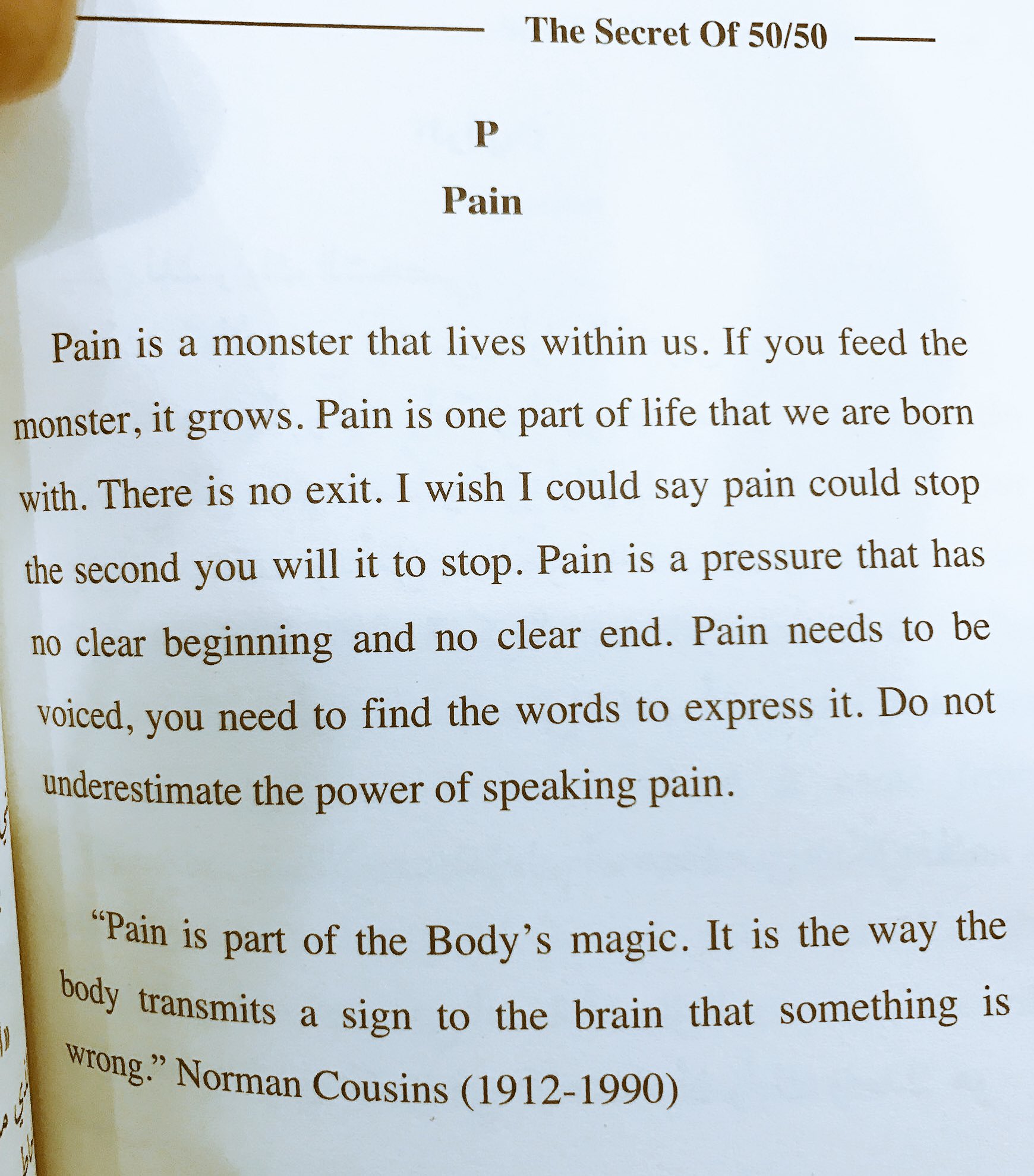 كتاب the secret of 50 50. Basically 50 50 is a day to day account of each marathon that he ran in his 50 marathons in 50 days challenge. It was a great book but it repeats a lot of info he put in ultramarathon man. Also you kind of notice that he s starting to go from running as a passion to running as a career. He s starting to head down the oh i m so awesome path.
