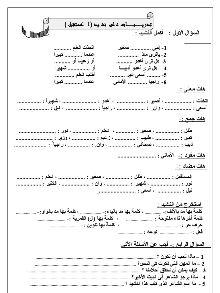 أوراق عمل لكلمات تنتهي بهاء أو تاء مربوطة